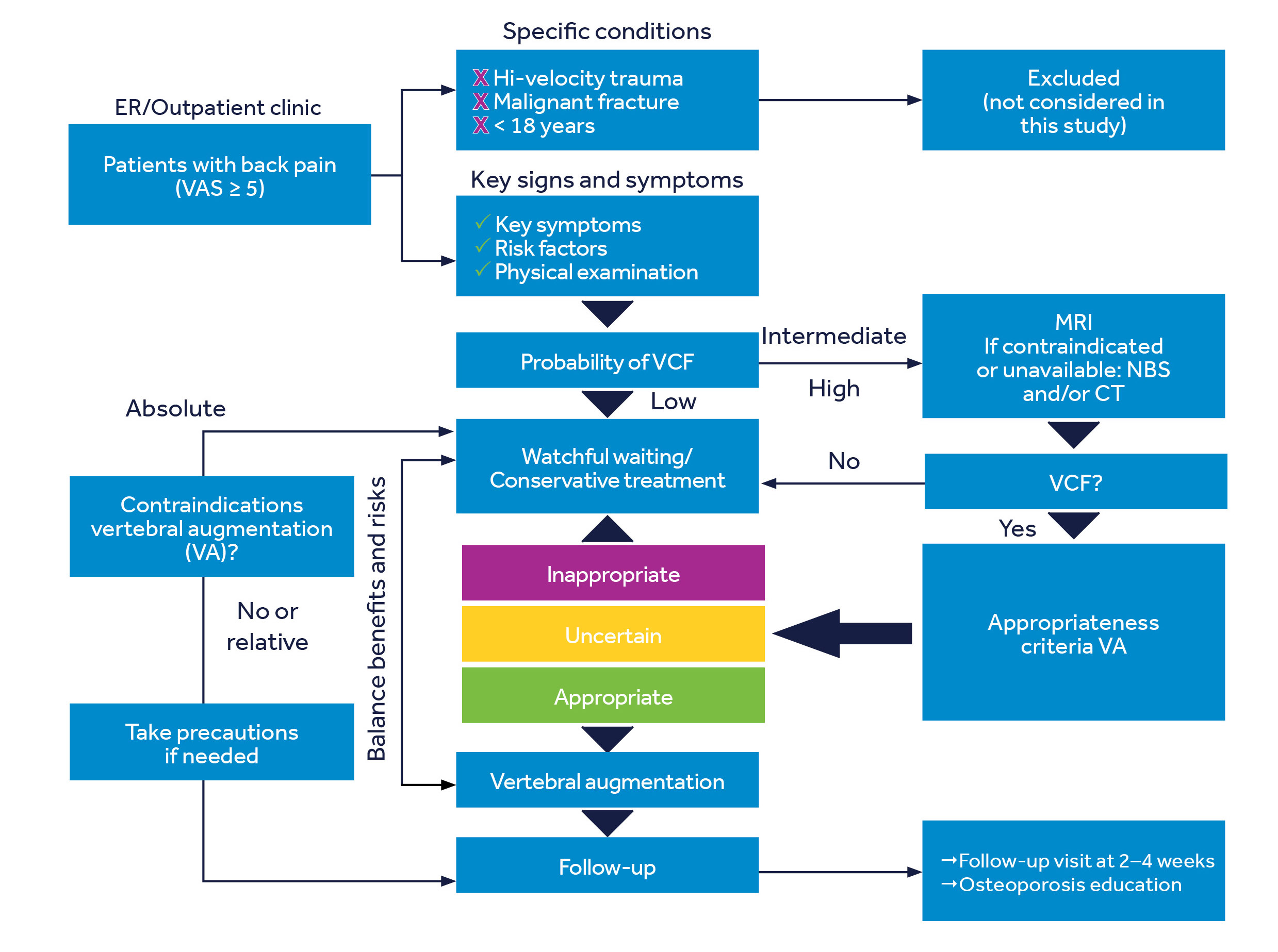 A lack of consensus within the medical community and different levels of familiarity with the literature have made it challenging for healthcare providers to identify those VCF patients who may benefit from vertebral augmentation (VA) and those who could be appropriately managed with conservative care. The VCF Care Pathway is designed to systematically address this challenge.