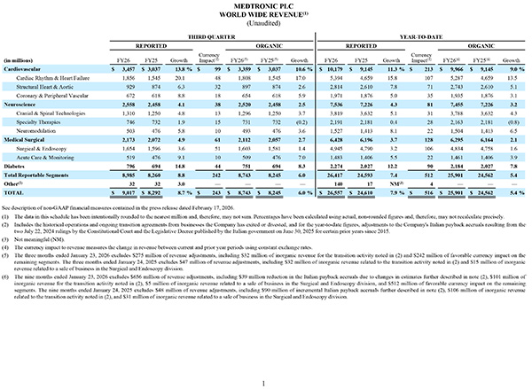 GALWAY, Ireland, Feb. 17, 2026 /PRNewswire/ -- Medtronic plc (NYSE: MDT), a global leader in healthcare technology, today announced financial results for its third quarter (Q3) of fiscal year 2026 (FY26), which ended January 23, 2026.